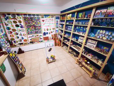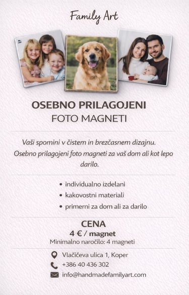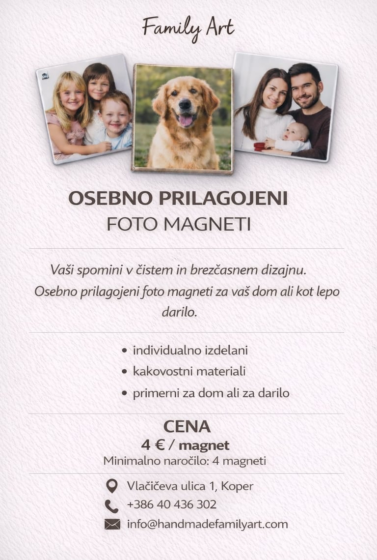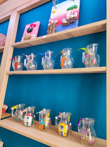 Od ročno poslikanih keramičnih in steklenih izdelkov, recikliranih lesenih dekoracij, domišljijskih kamenčkov do brezčasnih epoksi spominkov, vsak kos je ustvarjen z ljubeznijo. Vsak družinski član ima svoj stil in vanje vnese svojo iskrico, zaradi česar so naši izdelki edinstveni in polni osebnosti, popolni za vaš dom ali kot posebno darilo.